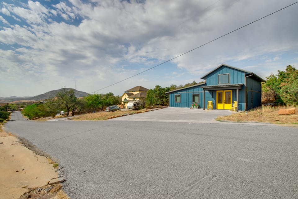 Nestled in the charming town of Medicine Park and surrounded by the majestic Wichita Mountains, this 3-bed, 2-bath vacation rental home, 'Blue House on Big Rock,' offers an ideal escape for outdoor enthusiasts. Explore nearby trails, take a dip in Bath Lake, or cast a line in Medicine Creek. As evening falls, cozy up by the fireplace and enjoy a laid-back movie night or roast marshmallows on the fire pit!