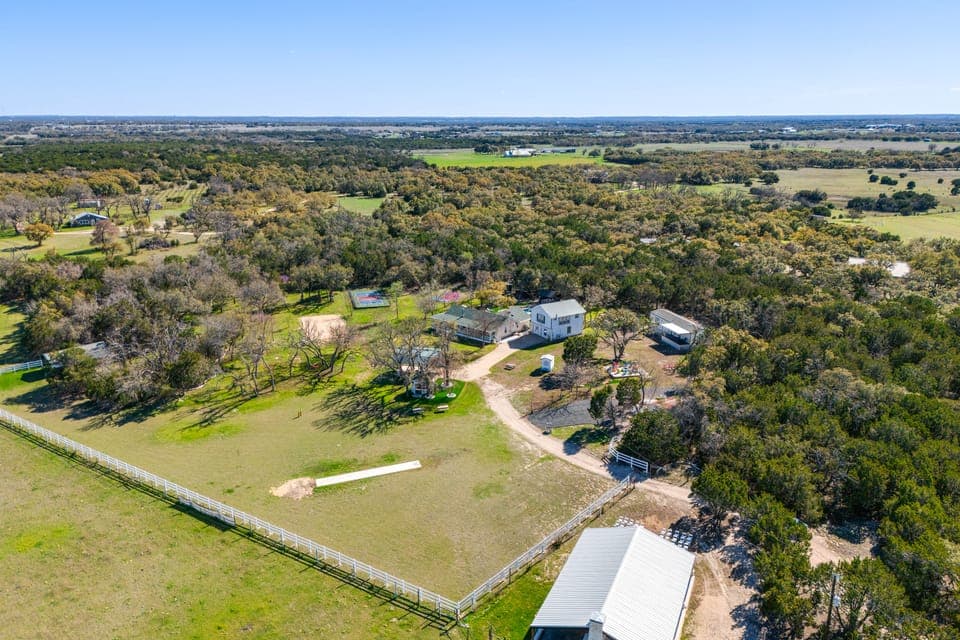 Look no further than this unique Bertram vacation rental for your next family reunion or group getaway! This compound is situated on a vast property just 44 miles from Austin and boasts 3 separate homes with 5 bedrooms, 5 full bathrooms, and 2 detached half bathrooms. With an outdoor kitchen, gazebos, sports courts, and a private pool to cool off in the Texas heat, this property makes it easy to fill your days with outdoor fun. And don't forget to roast s'mores and share stories by the fire pit!