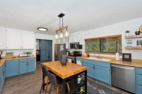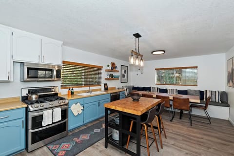 ✓ Fully Stocked Kitchen w/ Gas Oven/Range, Dishwasher, Coffee Maker & More + Nook Dining Table w/ Seating for 10 & Kitchen Island w/ 2 Barstools