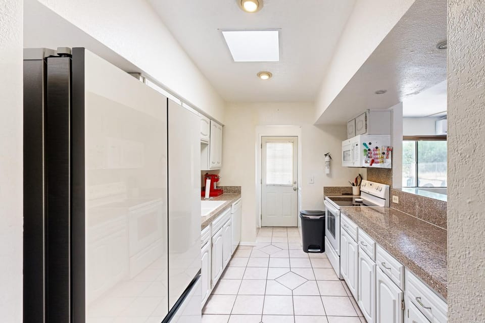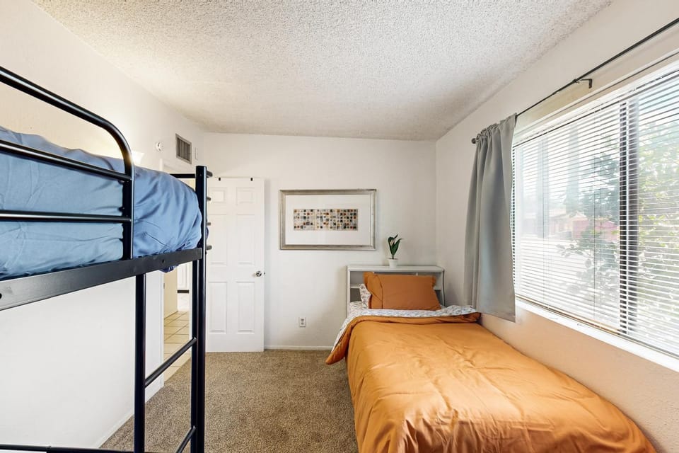 The hosts made it super easy to get in with a code and the garage was included which was very handy as we packed up the car to leave during a (rare?) rainstorm. The house is open plan and roomy with cheerful mid-century modern design, the kitchen has all you need and the bedroom and bathroom have plenty of storage for your stuff. The bed and pillows were comfy and all the linens/towels like new. We had a minor issue with the washer and the hosts came over right away at our convenience to resolve it. Location was convenient to bike routes and stores yet in a super quiet neighborhood.
