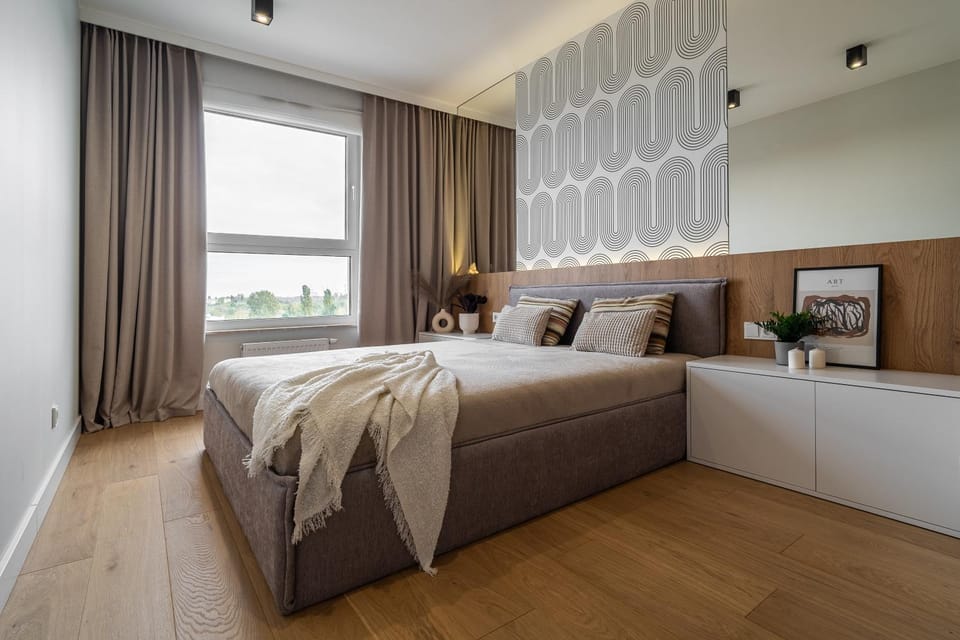 Perfekcyjna, zdalna obsługa. Przemiła, troskliwa gospodyni. Czystość, przestrzeń i wyposażenie bez zarzutu. Sprzęt i meble ponadprzeciętnej jakości, bez prowizorki, co rzuca się w oczy. Klimatyzacja w salonie i obu sypialniach. W kuchni m.in. porządny ekspres do kawy, a nawet herbata, cukier, przyprawy etc. Środki czystości i detergenty pod dostatkiem. Uroczym akcentem były napoje w lodówce, woda i słodka niespodzianka. Czuć serce.Telewizor przeogromny, przed nim mega wielka i ultra wygodna kanapa. Styl raczej surowy, bez dywanika pod łóżkiem, bez poduszek i kolorystycznych akcentów, ale bez wątpienia komfortowo. Miłośników eleganckiej, nieco smutnej szarości zadowoli. Mam nadzieję, że przyszli goście uszanują pracę właścicieli i zainwestowane środki. Można skorzystać z wysokiej klasy odkurzacza i nowych mopów. Fajnie, gdyby ciężkie hokery miały filcowe buciki. Żal myśleć o nieuniknionych rysach na podłodze... I choć malutka wycieczka na balkonie, by nie wnosić kurzu. Doskonale wygłuszona klatka schodowa, niewielu sąsiadów, zadbane i nowoczesne przestrzenie wspólne.