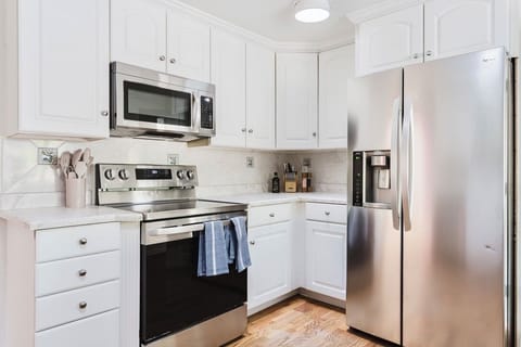 Fully Appointed Kitchen: Cook up a feast with top-of-the-line appliances, including a stove, oven, refrigerator, dishwasher, and microwave. Enjoy your meals in the airy dining area.