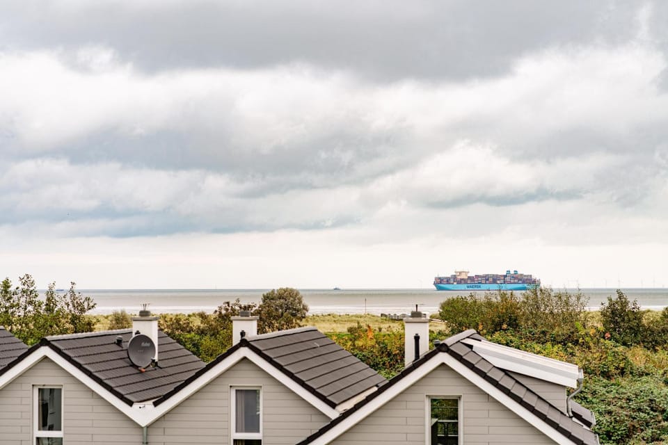 Der Ausblick vom Balkon aus direkt auf Deich und die Nordsee ist herrlich .
