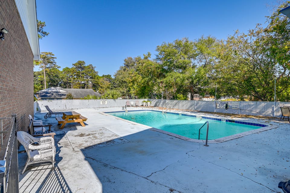 Yes, a swimming pool is available for use at Steps to Saltwater & Sand: Townhome in Myrtle. Enjoy the water!
