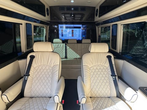 Often referred to as a mobile office van, the Business Class sets the standard with its sophisticated front and rear partitions, luxurious seating, and an array of entertainment features. Whether you’re commuting between regional offices, entertaining customers, tailgating with friends or traveling with family, the Business Class van keeps productivity in high gear on the road. For mobile office or other business applications that are efficient, functional and luxurious, the Business Class model is perfect for your personal use and corporate needs.