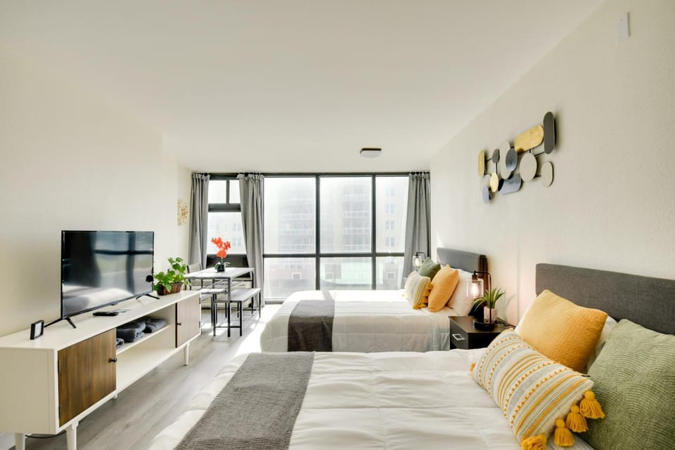 Business stays, family stays, couples stay, getaway vacation, and rental in Daytona Beach Shores at Modern Studio with 2 Queen Beds | Partial Ocean View | Pool & Beach Access for $227 for your next trip.