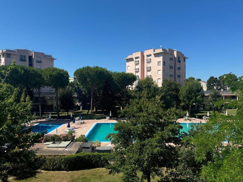 Residence molto bello con grandi spazi verdi, parco giochi, campo da pallavolo, tennis (a pagamento) e piscina
