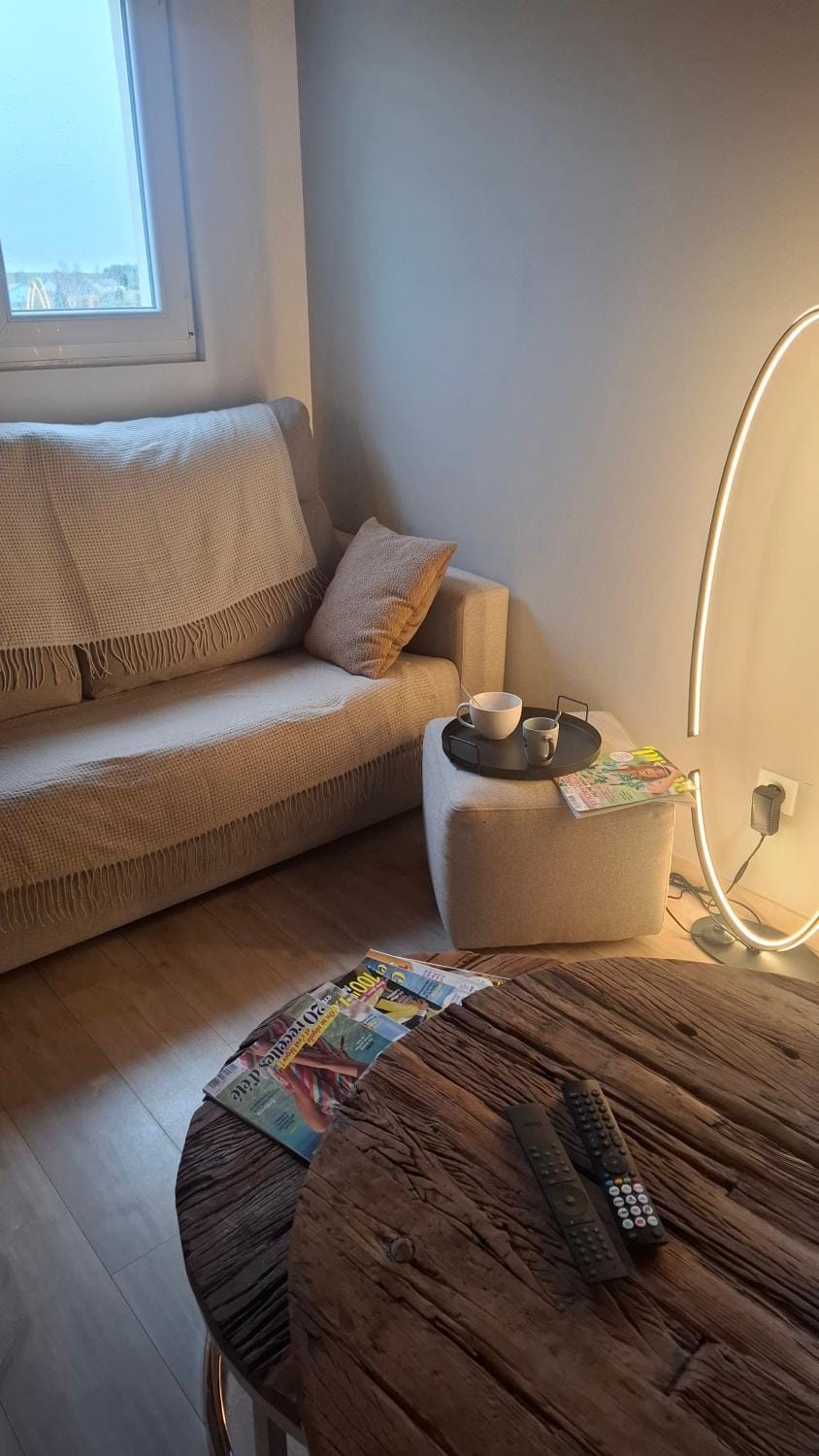 Logement au calme très propre et pratique. La cuisine est très fonctionnelle et super équipée. L’esthétique est soignée avec un beau travaille du métal pour l'ameublement et la cage l'escalier. Douche spacieuse avec un chauffage rapide de la salle de bain. Aucun souci d'arrivée très tardive car la clef dans un coffre sécurisé. Espace extérieure pour les enfants jouer et livre et jeux disponible dans le logement. Superbe vue sur le couché de soleil depuis la terrasse.