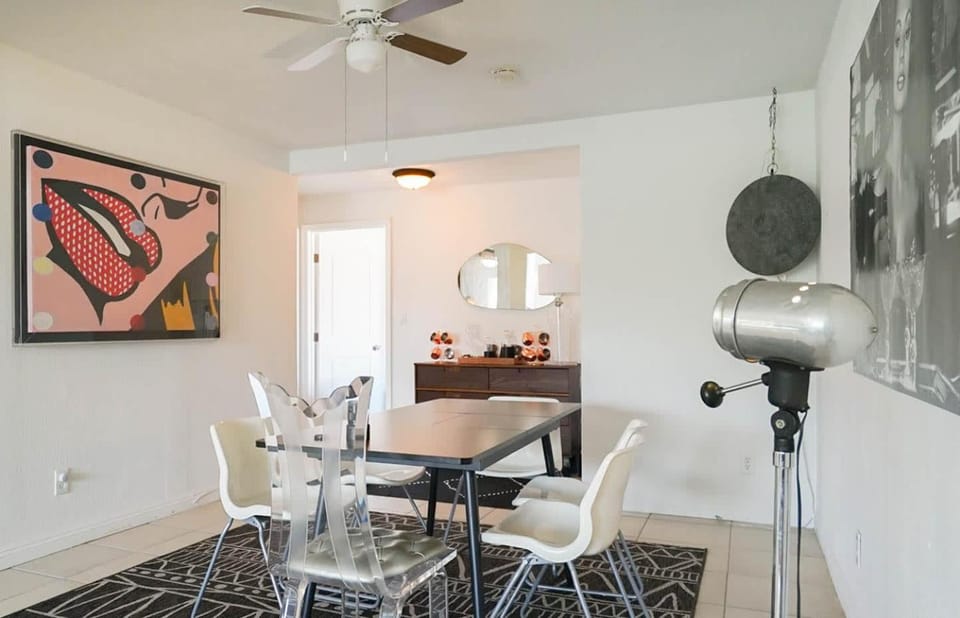 Business stays, family stays, couples stay, getaway vacation, and rental in Palm Springs at Colorful Artist’s Mansion w. pool and spa, pet friendly, all utilities included for $266 for your next trip.