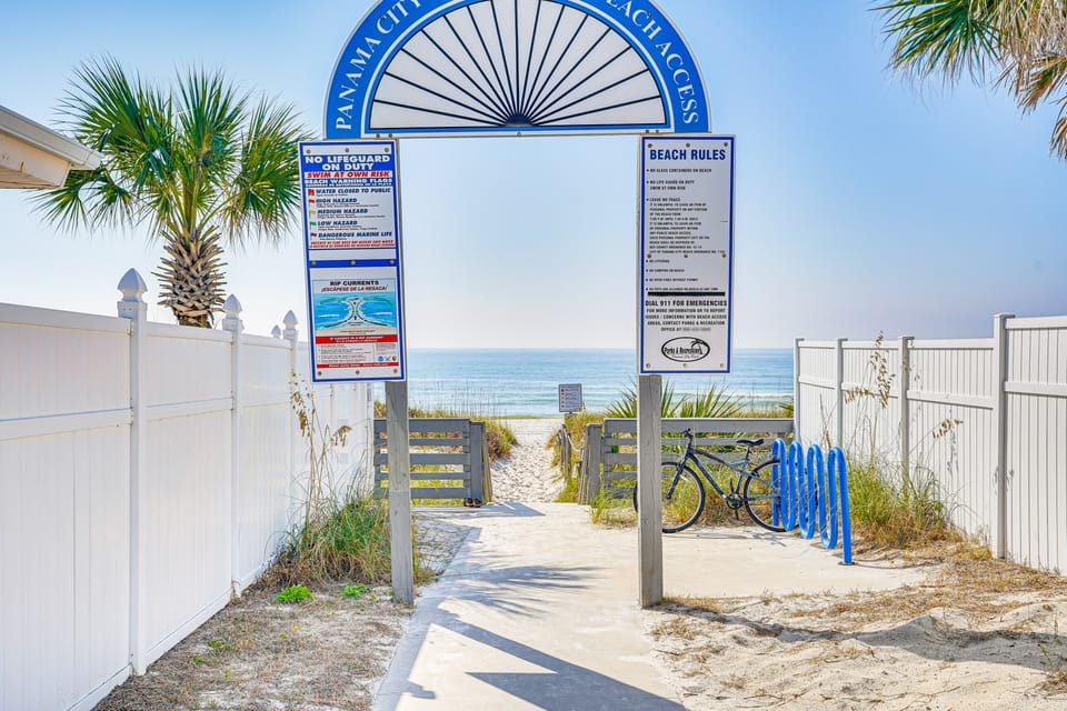Gulf Coast living doesn't get any easier than this PCB vacation rental, situated just steps from the beach! This 2-bedroom, 2-bath condo features a prime location and essential comforts for a stress-free stay. Lounge in the sand, tee off at a nearby golf course, or check out the thrills at Pier Park! Later, you can sit back and sip your favorite drink on the balcony. Panama City Beach awaits!
