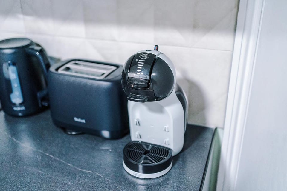 Poor bedside light (and only one) for reading, nowhere to hang wet towels, no shelf or hooks in the bathroom, parking was randomly available. No instructions to work hob, the oven would have made it unbearably hot if used. Nowhere to put any bags or clothes other than a few hangers. Marketing was misleading - this is a tightly packed bedsitting room and should explicitly be marketed as such.