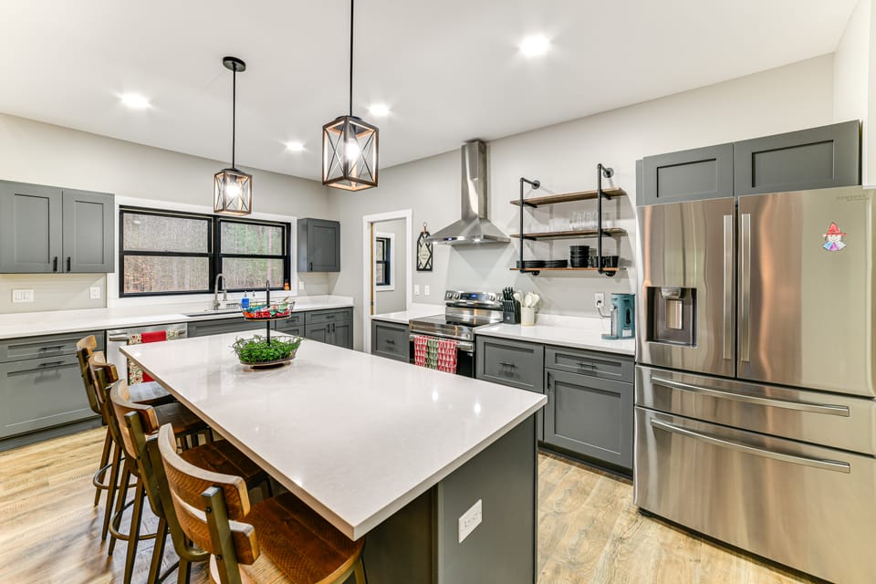 - Dining table & island/bar seating