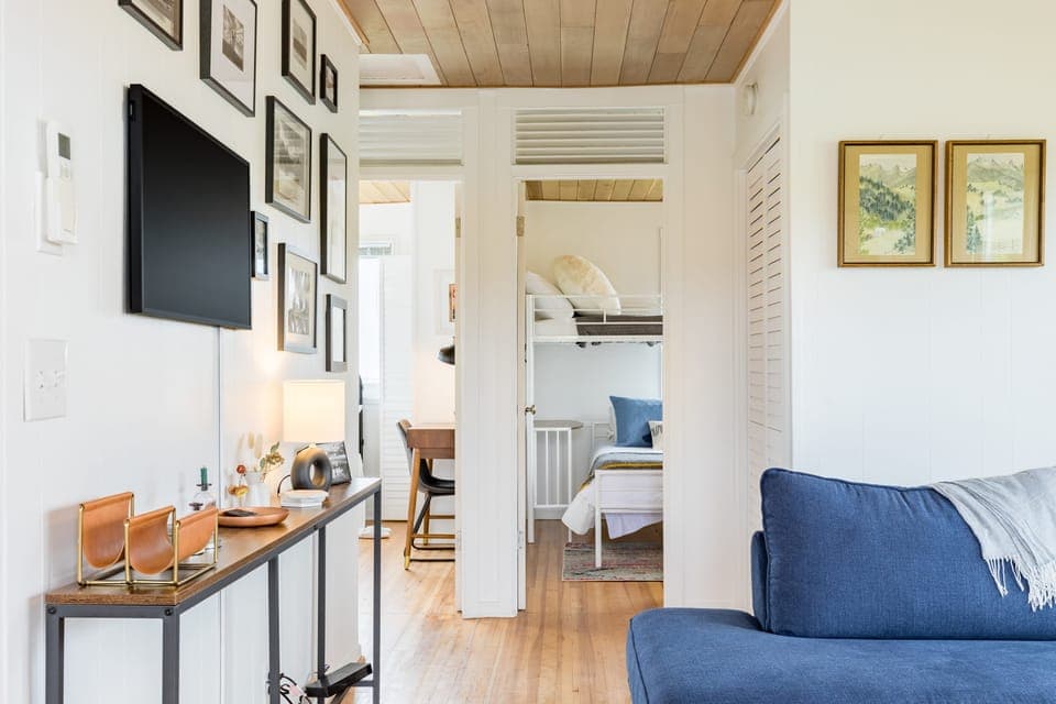The fully-equipped kitchen has everything you need for at-home meals and snacks, including pour-over coffee and a Nespresso machine. Gather at the indoor dining area, or eat outdoors as the sun sets. And when the stars twinkle above, the fire pit invites you to share tales and toast marshmallows.