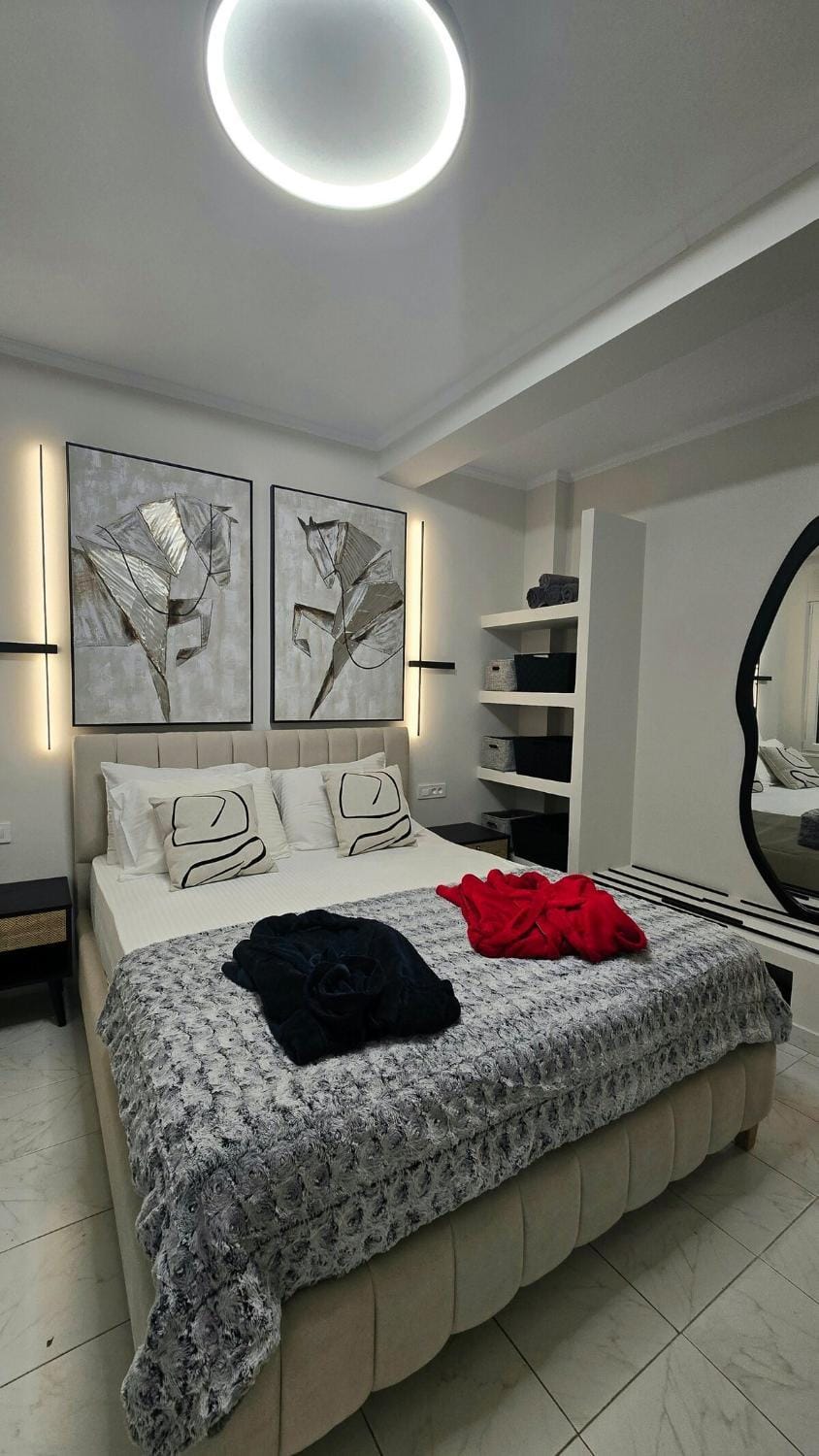 Ottima posizione, stile moderno, letto grande con topper, smart tv, doccia grande con set di cortesia. Inoltre, l’host ci ha gentilmente offerto bottiglie d’acqua, cioccolatini, marmellate, nutella, fette biscottate e caffè oltre a due ombrelloni per la spiaggia! Esperienza TOP!