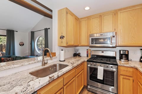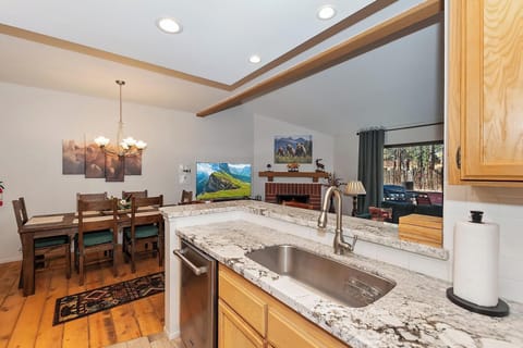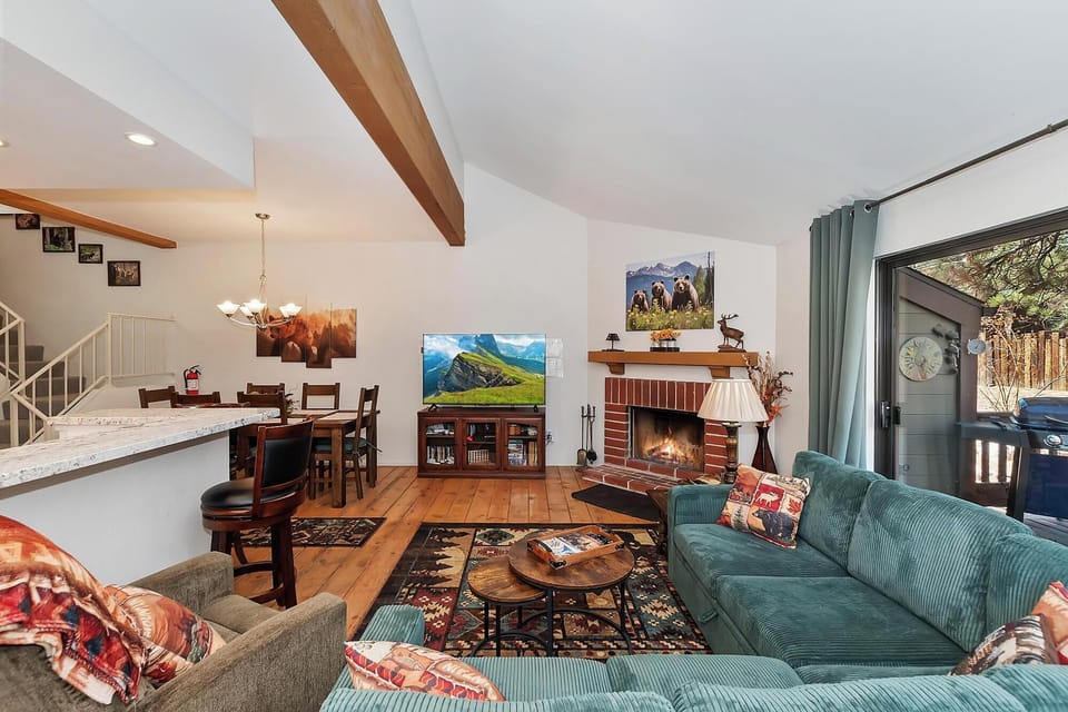 Come experience Big Bear at this lovely condo with cozy mountain vibes! This unit has been thoughtfully designed with attention to detail to ensure a wonderful getaway for you and your group. As you enter into the condo the open floor plan allows your group to gather together whether you are preparing a delicious meal in the kitchen, or getting cozy around the fireplace on a cold winter night. The fully stocked kitchen has everything you need to create family style meals or a quick breakfast before you head out for your day full of adventures.
