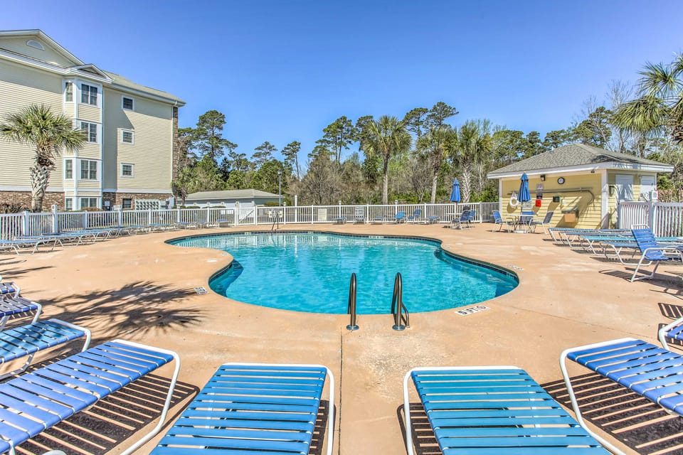 Soak up the sun and enjoy the best of the Grand Strand at this bright Myrtle Beach vacation rental. Perfectly positioned for golf enthusiasts and sun-seekers, the 2-bed, 2-bath condo is just a short drive from sandy shores and championship fairways. After a morning on the greens, cool off in the sparkling on-site pool or kick back with nearby live outdoor music. Book your effortless coastal getaway today!