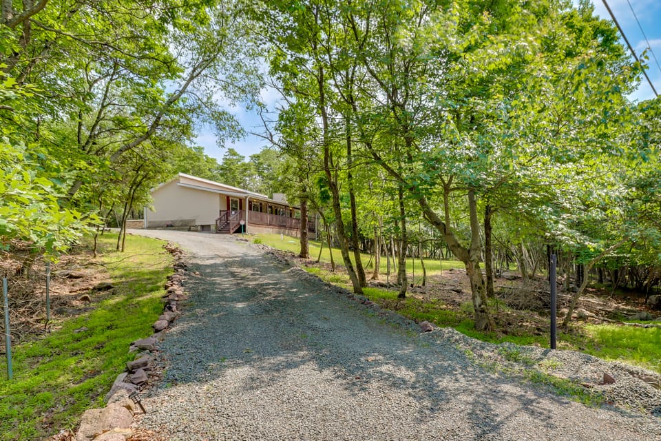 Soak in a serene vacation at this incredible Albrightsville retreat! This 3-bedroom, 1-bath vacation rental features a private hot tub, a Smart TV, a charcoal grill, a fire pit, and access to community amenities. When you aren't relaxing at this single-story cottage, hike through Big Pocono State Park or experience the whimsy of the Bear Mountain Butterfly Sanctuary.