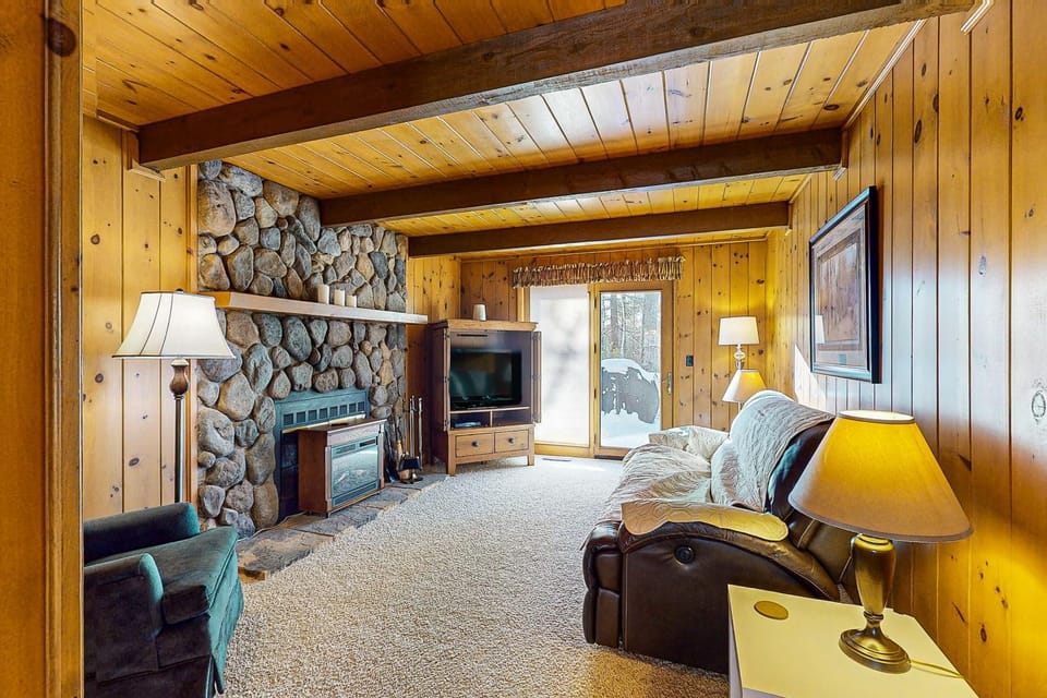 "A wonderful, private house that is located just off the main highway with a nice buffer of trees. It is located right on the Heart of Vilas County Trail. One bedroom with a king bed on the upper level..."