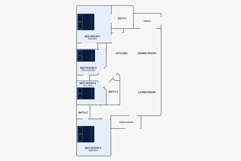 5. Bedrooms that fit everyone in your group. Hidden Grove has two bedrooms with king beds, a room with a full bed, and a bunk room perfect for smaller kids that has wall-mounted Pac-Man and Ms. Pac-Man games.