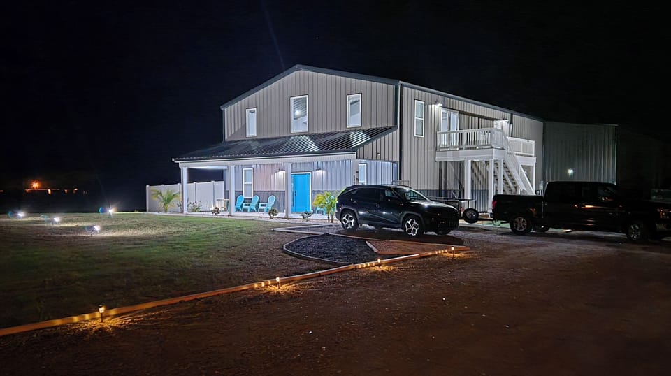 Our house is a very unique, spacious setting that provides my family and friends a place to stay when they are in town. We live in the front part of the house while the guest section is in the 2nd half. It is completely separated from our living space as guest have their own private entrance along with soundproof walls and doors. Located a half mile right of Highway 17, we are in the PERFECT location for individuals coming from all different directions. The property is completely separated from everything else with 50 acres of farmland and beautiful scenic views. Don't let this fool you though, we are around 5 minutes away from town, shopping centers, grocery stores, etc. The unique "Barn" look is one of a kind in the area with plenty of room for parking. We also have a huge patio area with 2 outdoor showers and a 6 hole putt putt course with TV and a scoreboard.