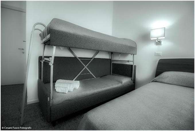 Stanza piccola, sembrava più uno sgabuzzino con tapparella rotta, assenza armadio o posto dove appoggiare la valigia. Pavimento bagno scivoloso e bagno piccolo con ventola rumorosa. Tv non funzionante. Climatizzatore troppo rumoroso per usarlo di notte. Letti molto scomodi, meglio dormire sul pavimento.