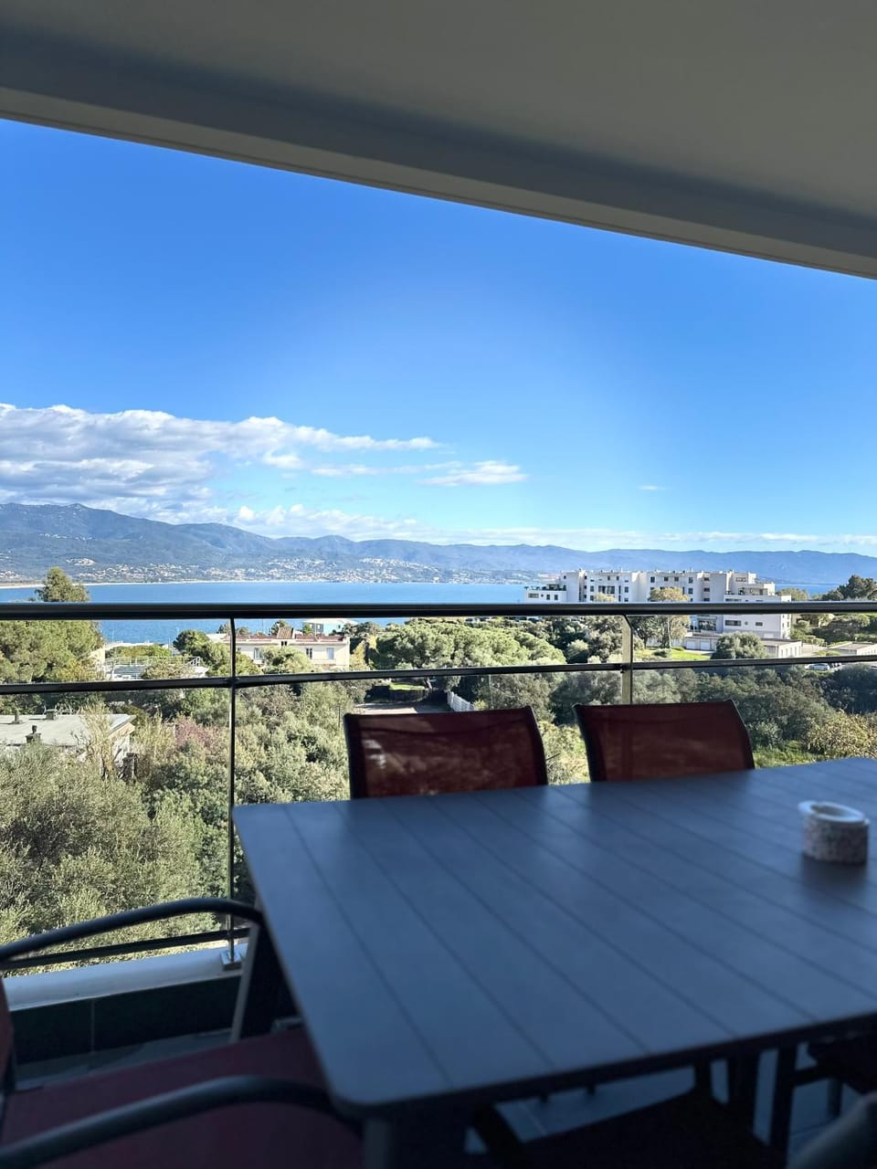 Indulge in a peaceful retreat at Ajaccio large terrace 180 degree view 8 minutes from the center and beaches, our elegant Apartment in Ajaccio. Enjoy amenities including Air conditioning, WiFi/Internet and Kitchen, and more.