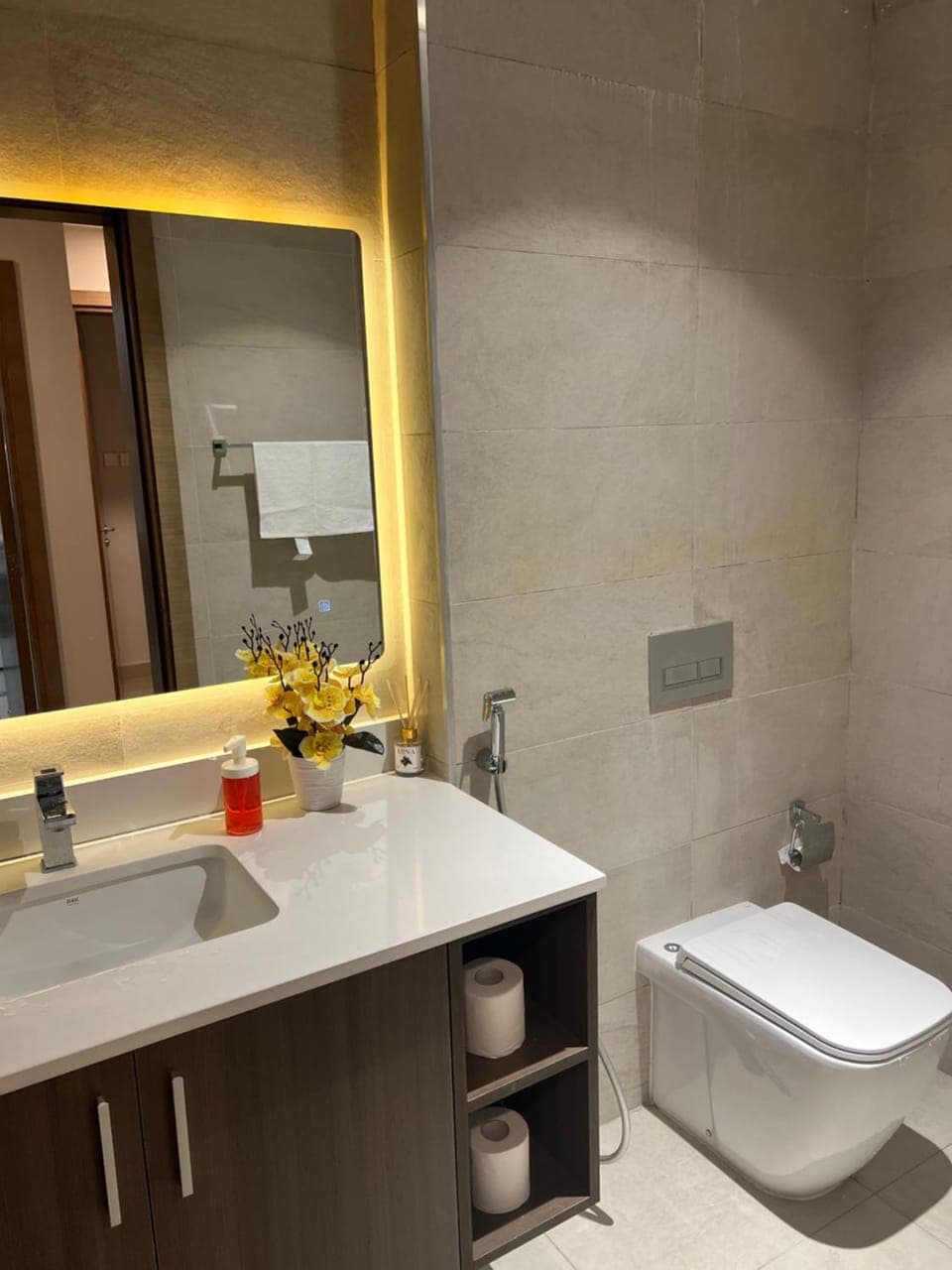 It was modern 5 star shit, great location near everything , and everything is available int the suit it was awesome experience and you have supermarket down the building