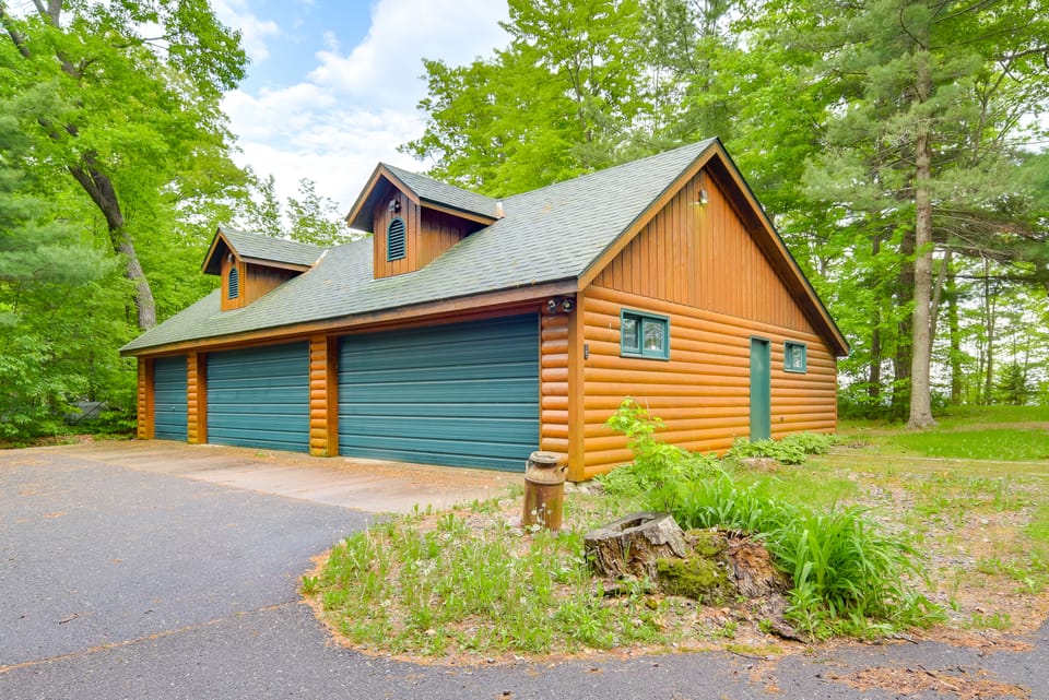 Year-round excitement and relaxation await at this 4-bedroom + bonus room, 5-bath Webster vacation rental! The log cabin has 2 living areas, a full kitchen, a yard with a playhouse for the kids, and on-site access to Big Sand Lake. Snowshoe along nearby trails in the winter or fish off the dock during the summer! After your adventures, unwind in the sauna, then gather in front of the fireplace for a group game night.