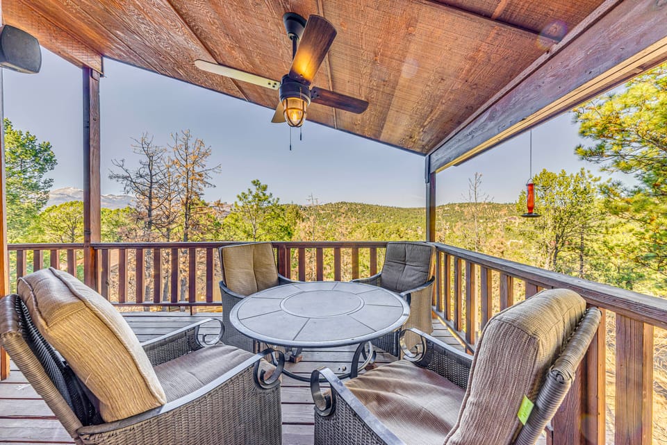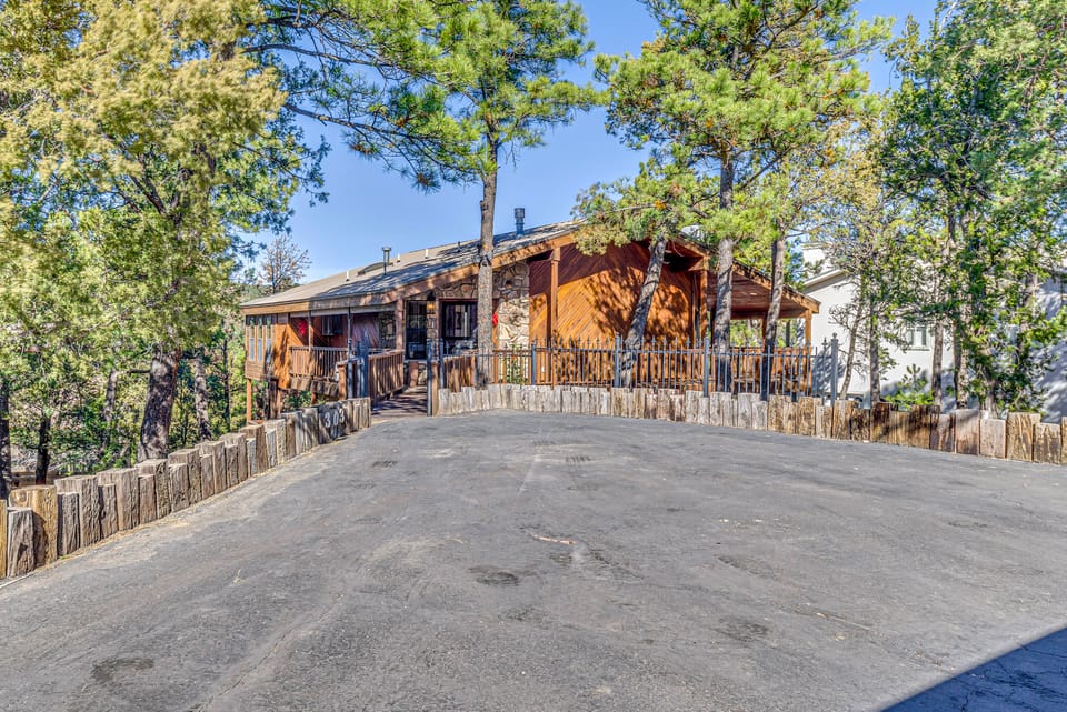 Your winter playground awaits at this Ruidoso vacation rental overlooking the Sierra Blanca mountains. With 3 bedrooms, 3.5 baths, 2 living rooms, and tons of private outdoor space, this lodge-style home lets you relax and bask in the fresh forest air. When you're ready to venture, shred nearby slopes, snow tube at Ruidoso Winter Park, or enjoy a horse-drawn sleigh ride through the historic Upper Canyon. Book today!