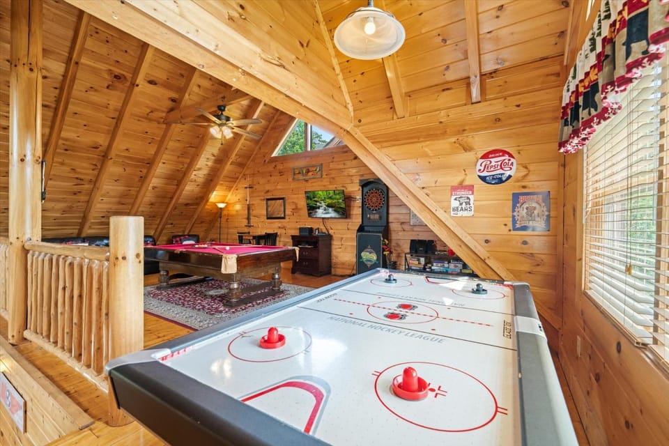 Nestled in Pigeon Forge, this Cabin is perfect for your next vacation. Enjoy New Song Appalachian Chink Style Cabin features Foosball and Air Hockey Table's top-rated amenities, including Air conditioning, Kitchen and Laundry services, and more.