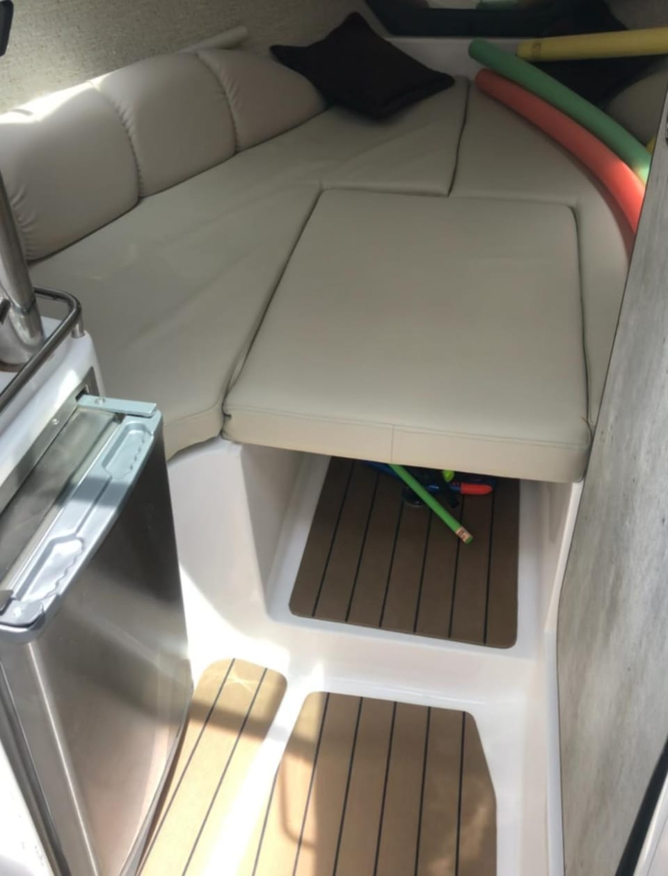 We didn’t find pool listed as an amenity for this docked boat. It may be worth double checking if a pool is important for your stay.