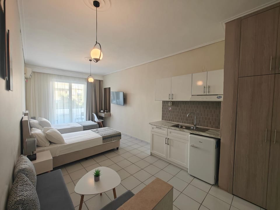 Marina Studio Appartments is the perfect option to choose and stay near by kardamenas square,Beach,Restaurants and the Bus station which is important because it’s an easy access from and to the airport! (I would definitely recommend to choose the bus cause there aren’t a lot of taxis in the island and the queue was 1 hour to crab a taxi from the airport to the apartment, taxi is about 20€ ,bus is about 3€ from the bus station to the room is 5’ walk) The room was Clean and cozy ,had everything that we needed! Hairdryer,Warm water,Shampoo body wash, towels, Coffee and water was offered! The bed was comfortable with a nice TV! AC working perfectly ! Definitely would like to visit again!