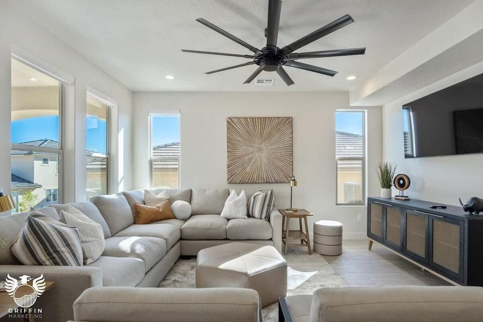 This brand new stand-alone vacation home finished in late 2022 is ideal for hosting groups and families looking to explore the St. George and Zion National Park area. Your guests will enjoy access to a pickle-ball court, scenic walking trails and community amenities. With the capacity to sleep up to 10 guests and large living areas this is the perfect setting to create memories. With an upstairs and downstairs master bedroom this home is perfect for multiple families! You will have access to a two car garage and private patio. Inside the home, there is a fully stocked kitchen and laundry room. Cook your meals in this brand new kitchen, or go out to eat, in minutes you will find lots of dining options! Make sure to be ready to play some Pickleball and enjoy the many trails next to the home! Relax in your private Hot Tub after a fun filled day!