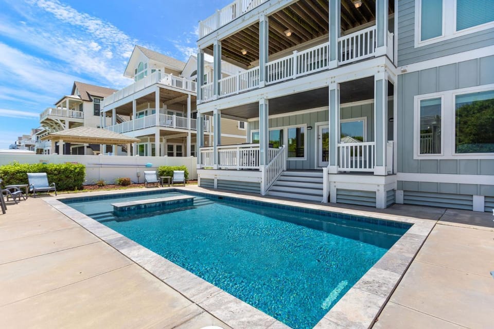 Business stays, family stays, couples stay, getaway vacation, and rental in Corolla at Joyful Sound: Soundside 5-bedroom, Private Pool & Spa, Elevator and Dog-friendly for $1,208 for your next trip.