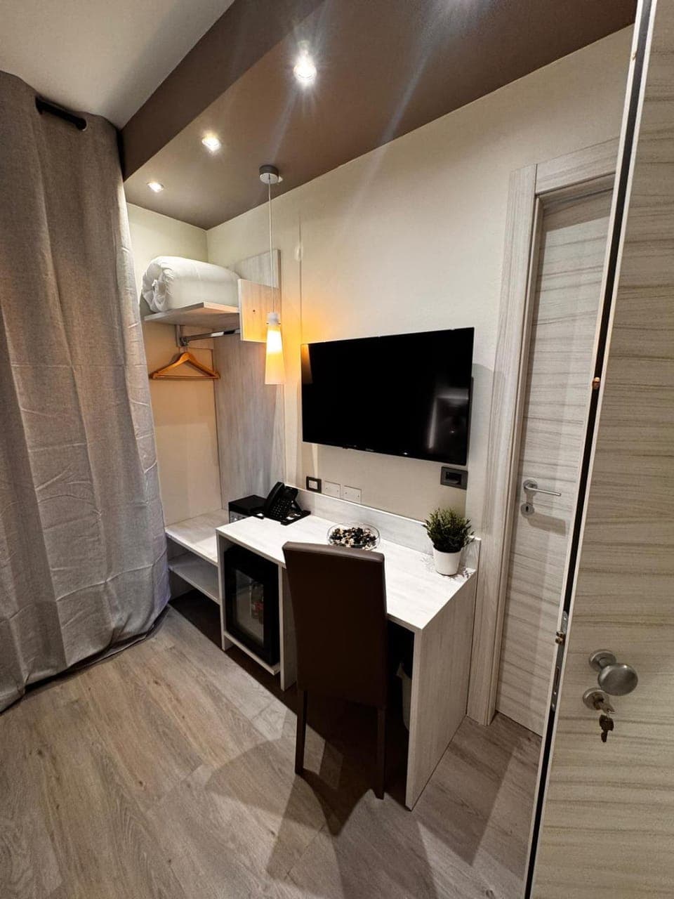 Mi è piaciuta la camera con arredamento moderno e pulito ed essenziale.