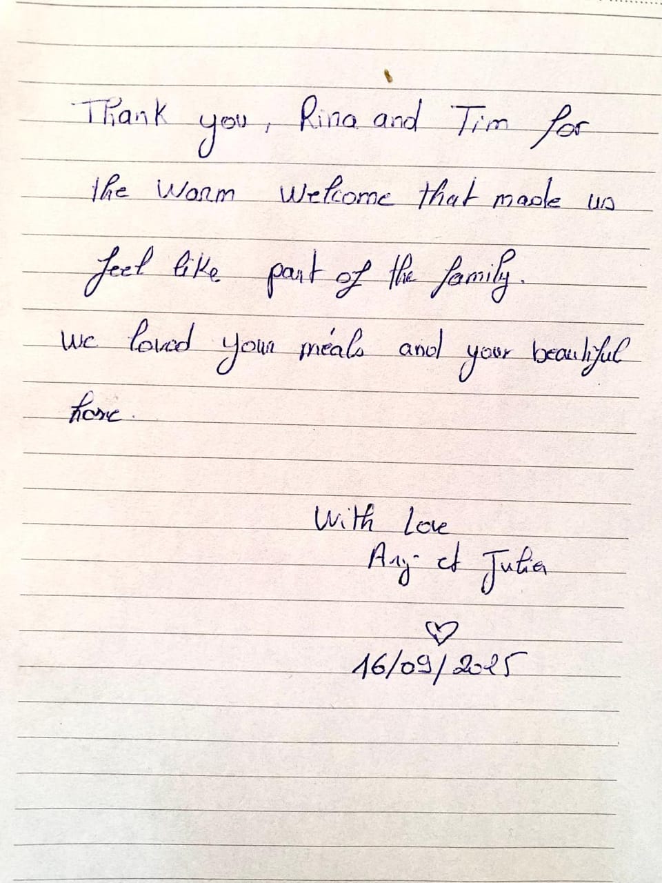 المكان هادئ واجواء عائلية مثالية وعائلة مرحبه ومحترمة وحجزة لي باص الى ثيث واهتمة في طعامي الصباح حضرته من الليل ودائماً حريصة على راحتي