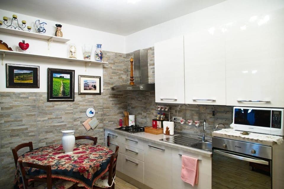 This is a residential area with a grocery store, art, and a bus stop nearby. Very traditional decor. Honestly, it felt like staying at a Nonna's house. Lovely furniture and crocheted doilies. The kitchen was fully stocked and plenty of extra linens. Communication with the owner was great. Good wifi and smart TV.