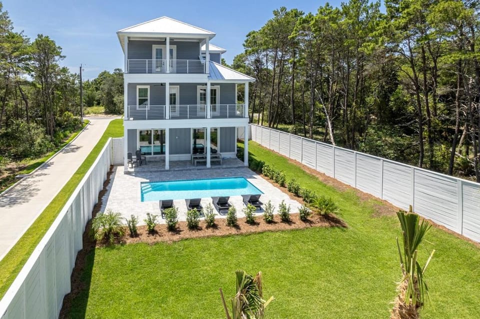 Experience vacation in Inlet Beach with our House, Emerald Palms|Easy Beach Access|Private Heated Pool|Gulf Views|Golf Cart. Enjoy amenities such as Family friendly, and more.