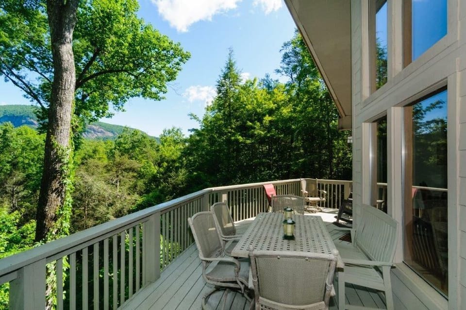 After a day of hiking at Chimney Rock State Park or boating on Lake Lure, unwind in your private hot tub beneath the stars. Gather around the outdoor fire pit with provided firewood or challenge your crew to a game of pool in the spacious game room. The home also features puzzles, books, games, and satellite TV.