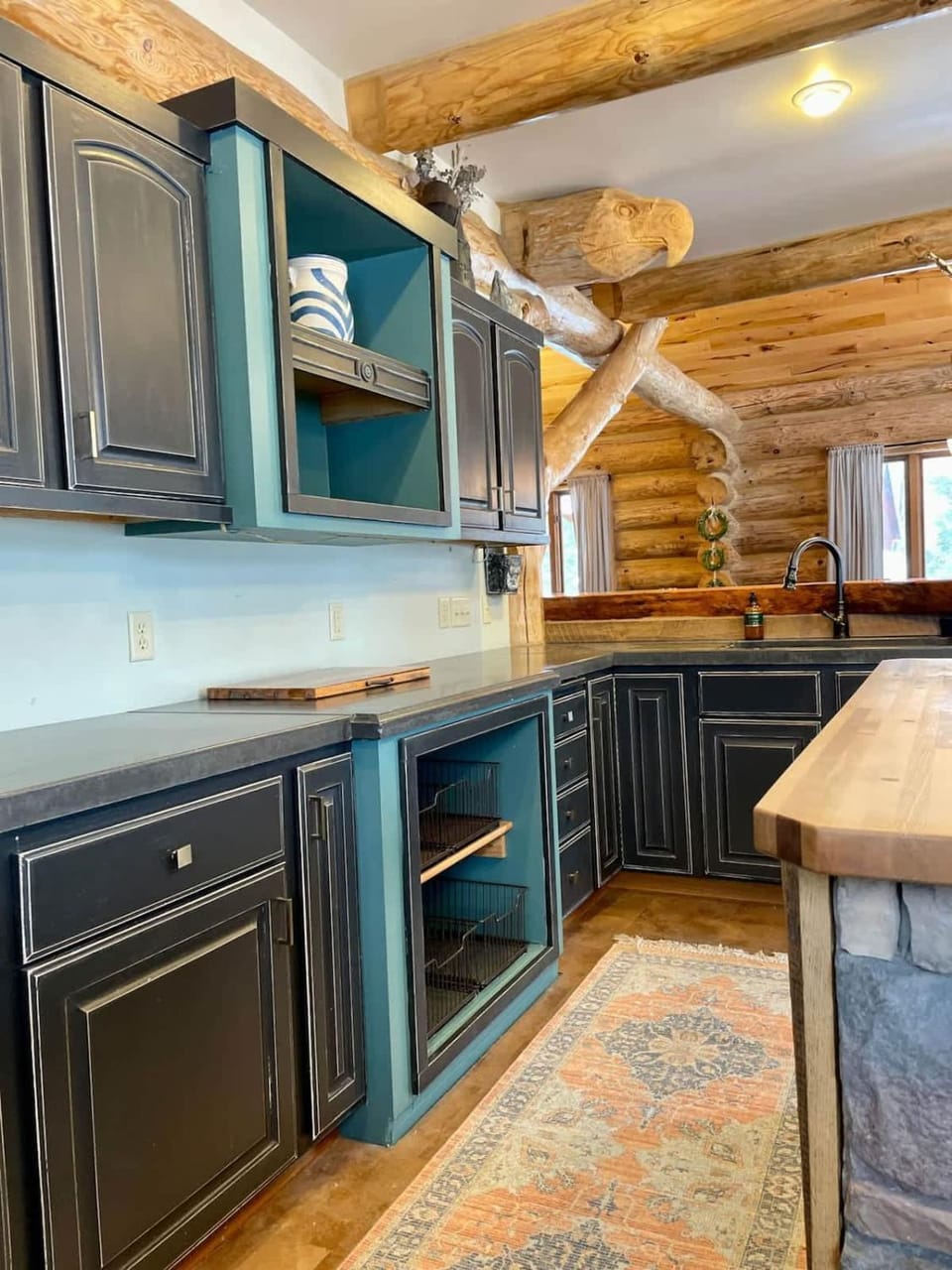 What amenities are available at Stunning Log Cabin Getaway at The Hannu Haus?