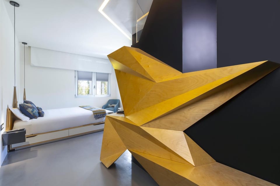 + big comfortable room with unique design. I like an electric tv bed, different type of room illumination and blackout curtains