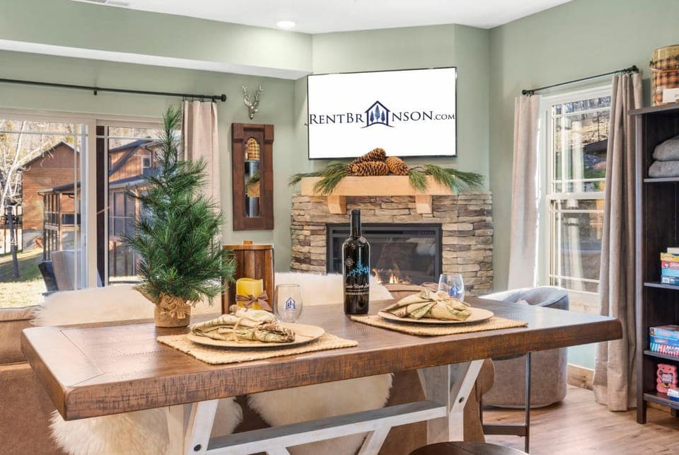 2.8 miles from Branson Landing in Hollister, New Cabin at Tall Timbers! Free Tickets! Indoor and Outdoor Pools! provides accommodations with access to a spa center. With mountain views, this accommodation offers a balcony.