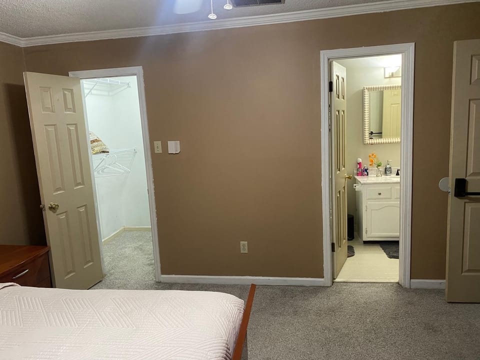 Family home in a peaceful neighborhood. Large, clean room as shown in photos. Nice that the mini fridge has a separate freezer to make ice for our cooler. Comfortable bed with private bathroom. We just stayed one night on a road trip. Derk was a responsive host. Way better than a noisy hotel by the interstate!
