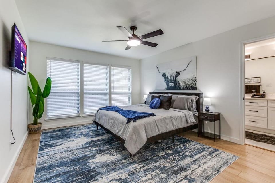 Blue Blissful Retreat 3B 2B KING is located in Richardson, just 6.9 miles from Historic Downtown Plano and 12 miles from Mockingbird Station. This property offers access to a patio, a pool table, free private parking, and free Wifi.