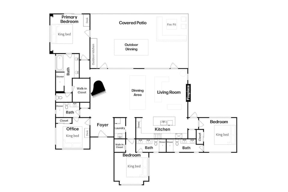 Welcome to Sonoma Pool Retreat, your private luxury oasis nestled in the heart of wine country. This retreat has 3 bedrooms and an office; each of these 4 rooms has a king bed and a private ensuite bathroom. It provides a full-on resort experience, boasting a saltwater pool, firepit, hot tub, game room, a stunning great room, and ample outdoor living space.
