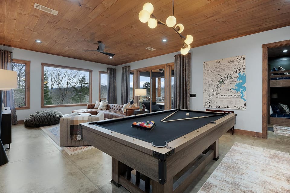 Discover the beauty of Blue Ridge with a stay at 5 Min to Downtown-Hot Tub-Theater Room-Game Room w/Pool Table-Pets-Sleeps 12, a top rated Cabin with amenities such as Air conditioning, Dryer and Fireplace, and more.