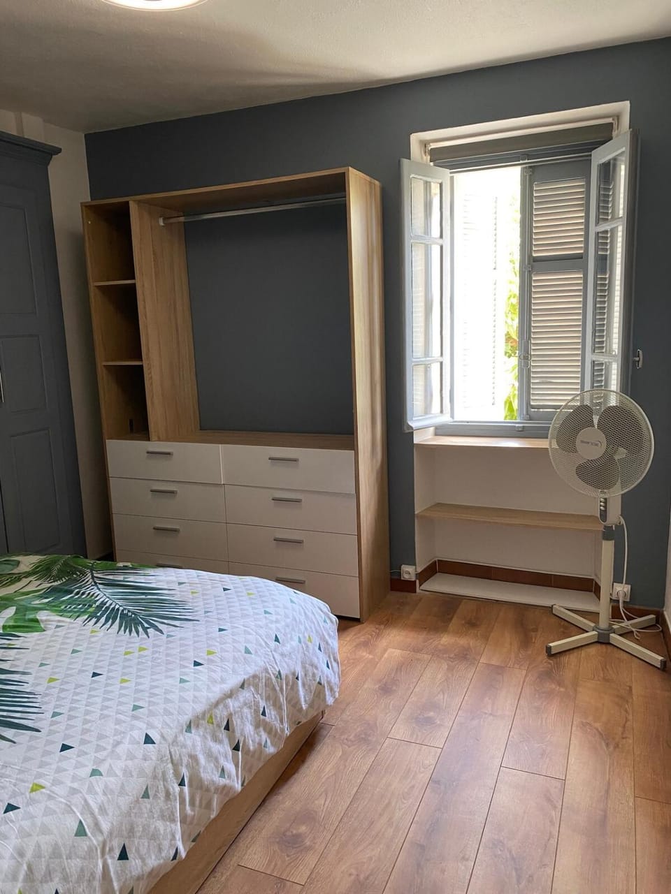 La salle de bains! Même si la propriétaire nous a prévenu que c'était atypique, ce n'est franchement pas pratique de passer à travers la douche pour accéder au lavabo et aux wc. En plus, la porte pliable de la douche ne ferme pas et on asperge le sol côté lavabo: pour 1 nuit, ça va mais (pour moi) pas plus.