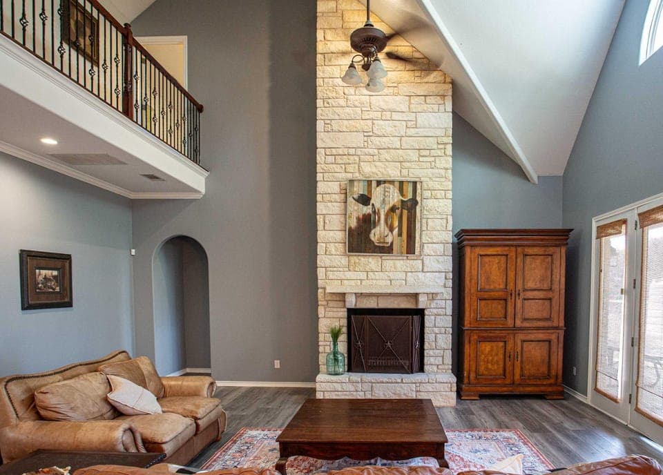 Offering a garden, Lakefront 6BR Retreat w Dock & Game Room provides accommodations in Buchanan Dam. Both free Wifi and parking on-site are available at the vacation home free of charge.