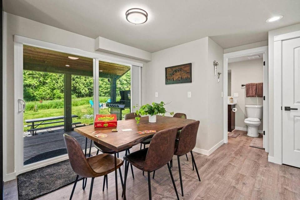 It was very clean, bright, and cozy. House was well-stocked with kitchen supplies such as dishes, pots and pans, aluminum foil. Bathroom had soap and shampoo. Nice views from the backyard. Location was very good, near to Paradise entrance of Mt Rainier NP. Situated in quiet environment to enjoy nature.