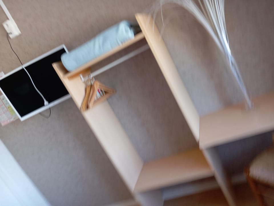 Equipement de la chambre sommaire, à étoffer et améliorer (pas d'armoire/penderie, pas de fauteuil)